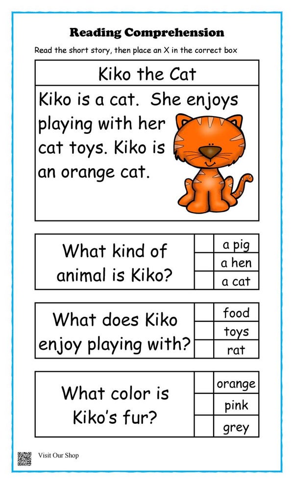 The exercises allow students to place an X after reading the story while also comprehending what they read.